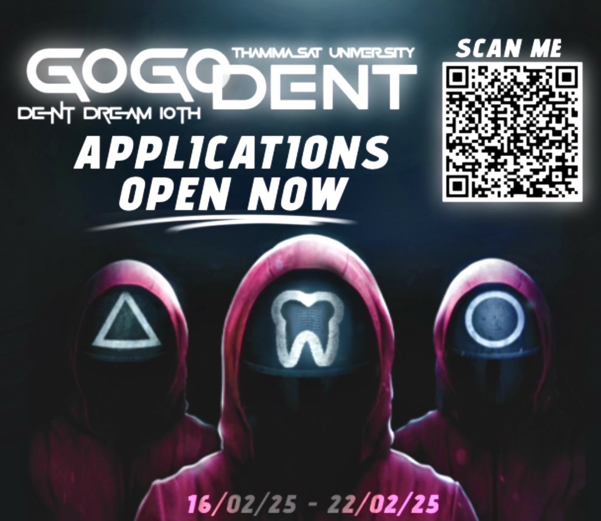 ขอเชิญชวนน้อง ๆ มัธยมปลายที่มีความสนใจในคณะทันตแพทย์มาทำรู้จักกับเรามากขึ้นผ่านค่าย DentDream Camp 10th ค่ายสานฝันสู่หมอฝันโดมครั้งที่ 10 ในวันที่ 22-23 มีนาคม 2568 นี้ (ไป-กลับ) ณ อาคารปิยชาติ คณะทันตแพทยศาสตร์ มหาวิทยาลัยธรรมศาสตร์ ศูนย์รังสิต