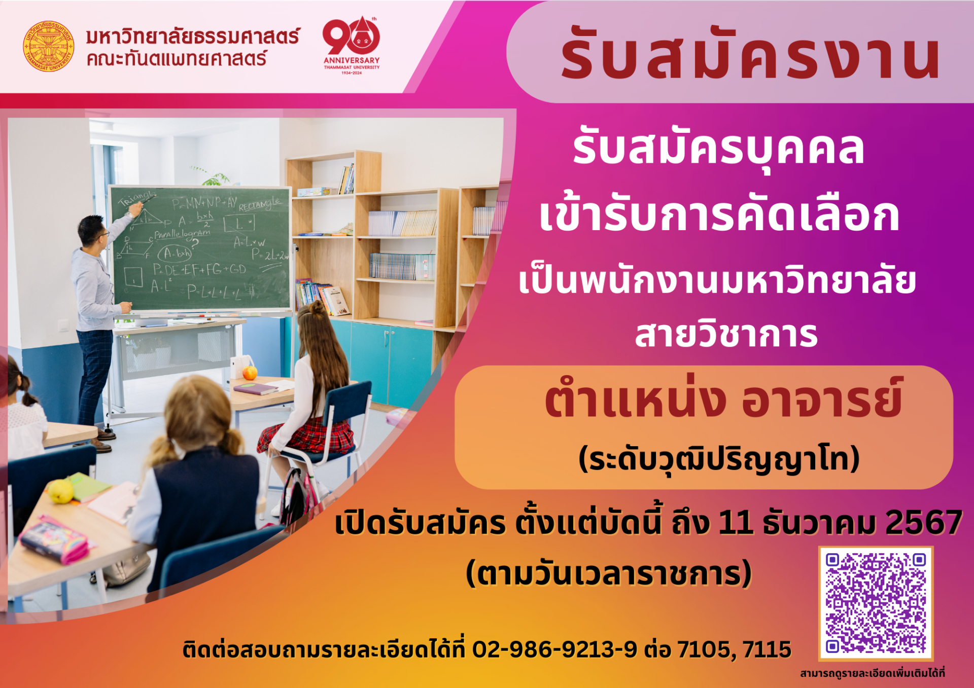 เปิดรับสมัคร ตั้งแต่บัดนี้ ถึง 11 ธันวาคม 2567 (ตามวันเวลาราชการ)