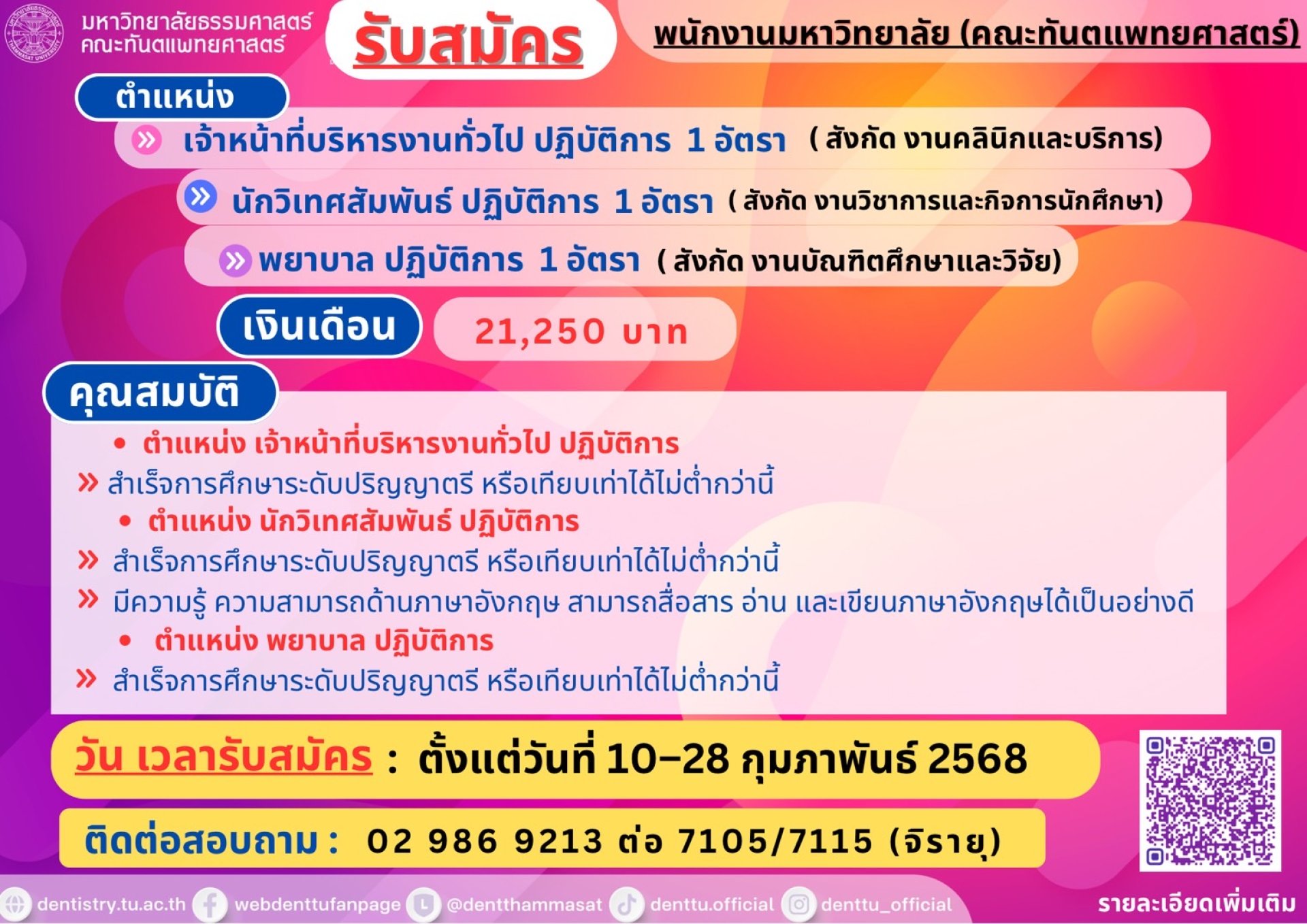 รับสมัครพนักงานมหาวิทยาลัย (คณะทันตแพทยศาสตร์) สายสนับสนุน