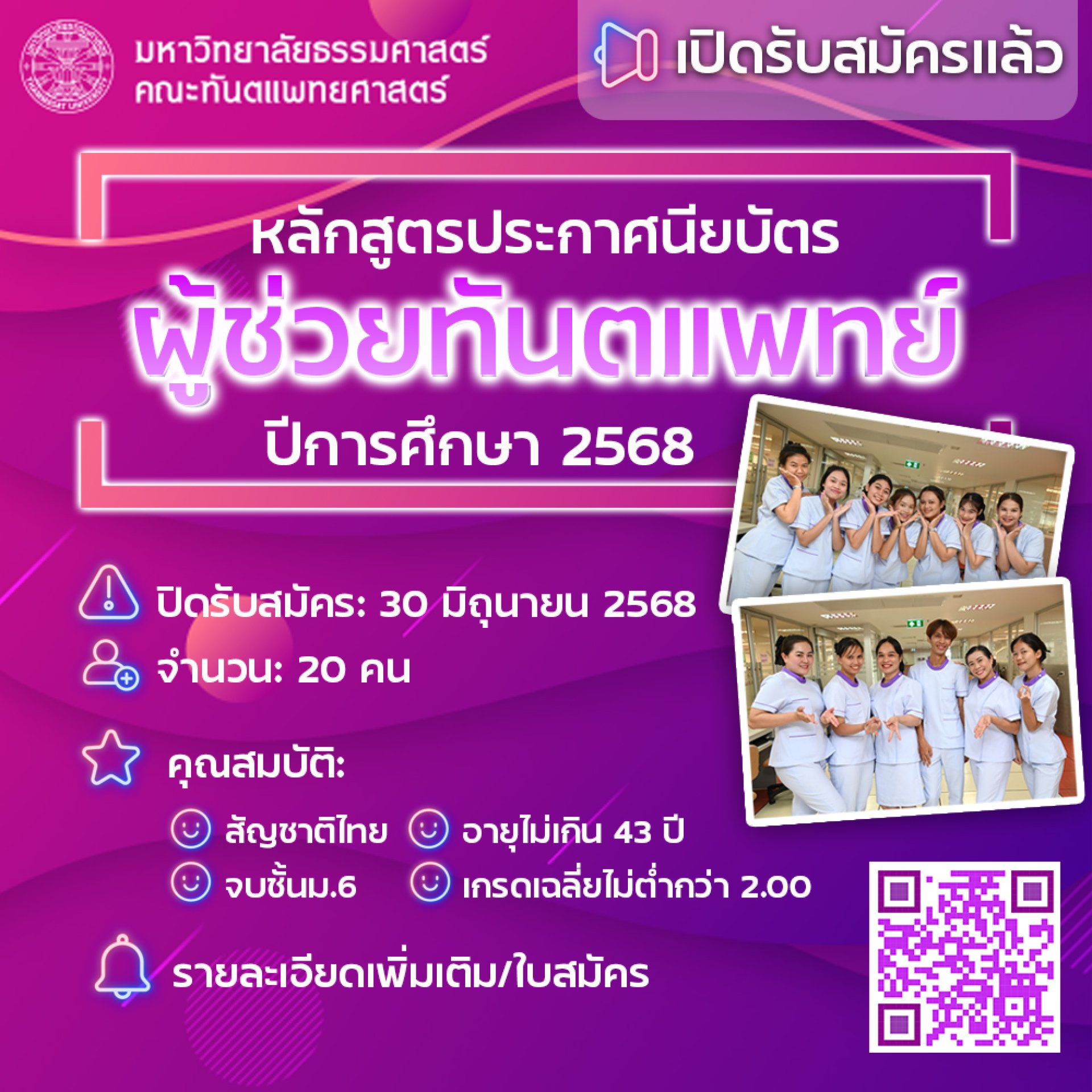 >> ปิดรับสมัครวันที่ 30 มิถุนายน 2568 รับจำนวน 20 คน