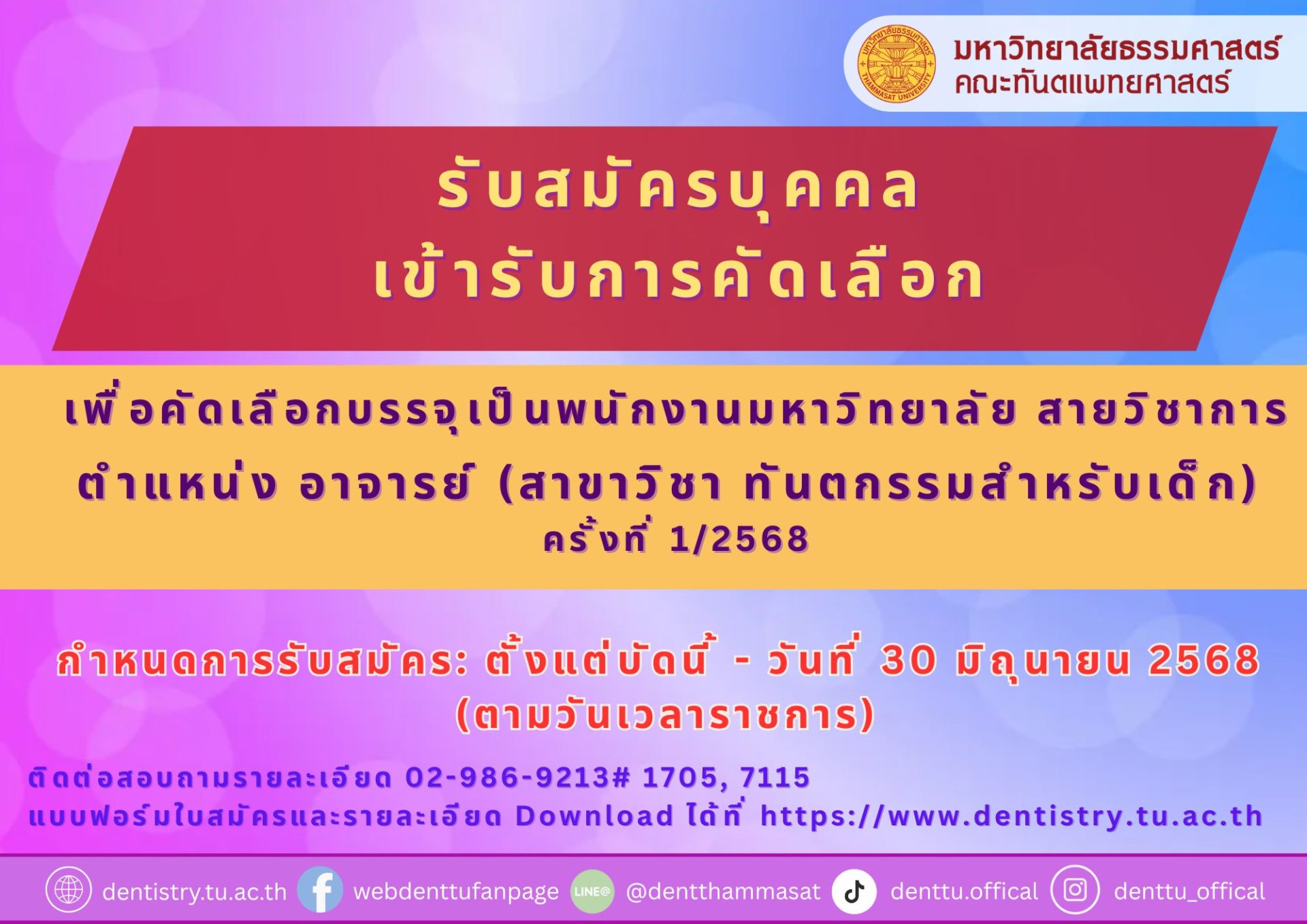 >> กำหนดการรับสมัคร: ตั้งแต่บัดนี้ - วันที่ 30 มิถุนายน 2568 (ตามวันเวลาราชการ)