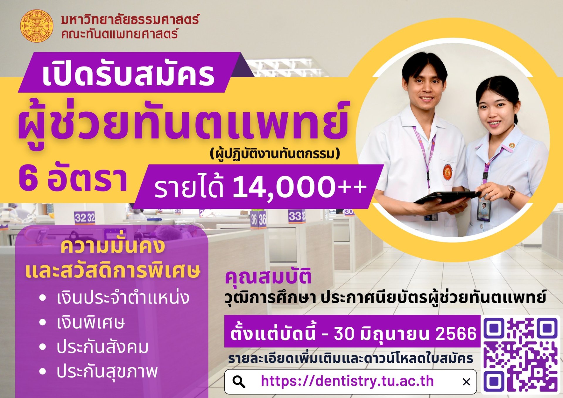 ประกาศรับสมัครงาน ตำแหน่ง ผู้ปฏิบัติงานทันตกรรม 6 อัตรา (66)