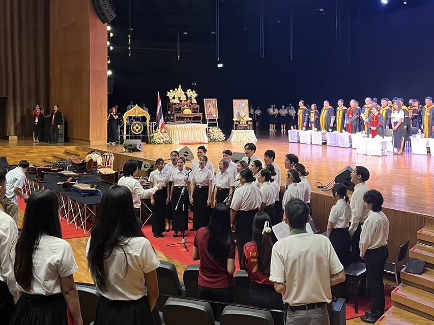 They also perform at events outside the university, such as the Chula-Thammasat Traditional Football Match, where they collaborate with the Thammasat University Colorguard, the Thailand Choral Festival (TCF), and events for vocational training for the disabled, in collaboration with King Mongkut's University of Technology Thonburi.