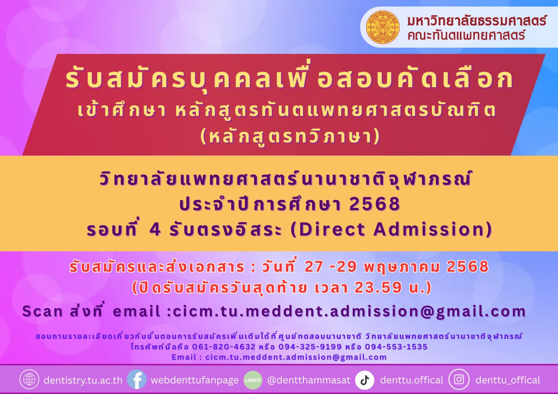 Scan ส่งที่ email :cicm.tu.meddent.admission@gmail.com